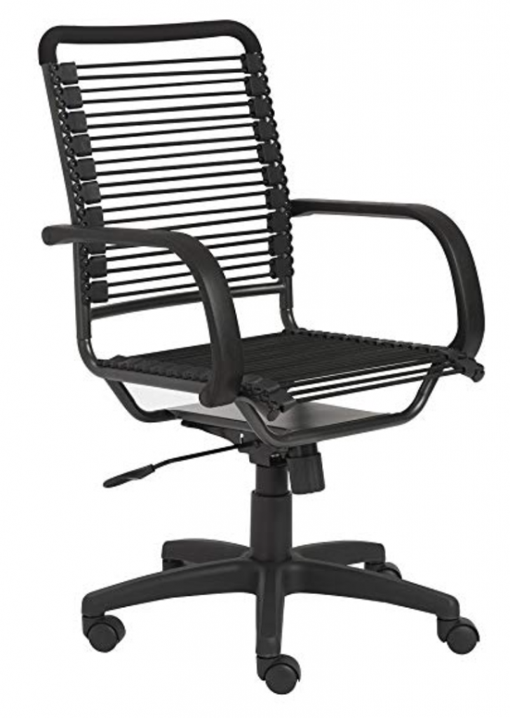 While it may not have the luxury look of a leather chair, it also doesn’t have the price tag. The bungee cables provide support and flexibility which may appeal to people who don’t like sitting in a stiff, rigid chair all day. However, it may leave you with lines on your legs if you’re wearing a skirt or shorts, so keep that in mind.